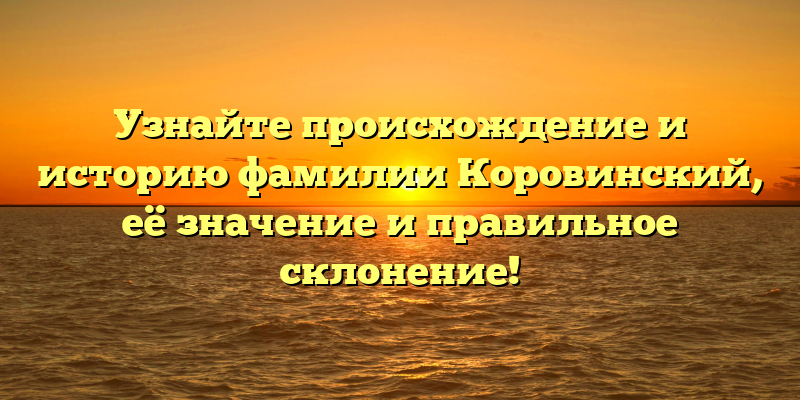 - Раскрываем тайны фамилии Коровинский: происхождение, история, значение, и склонение в одной статье!