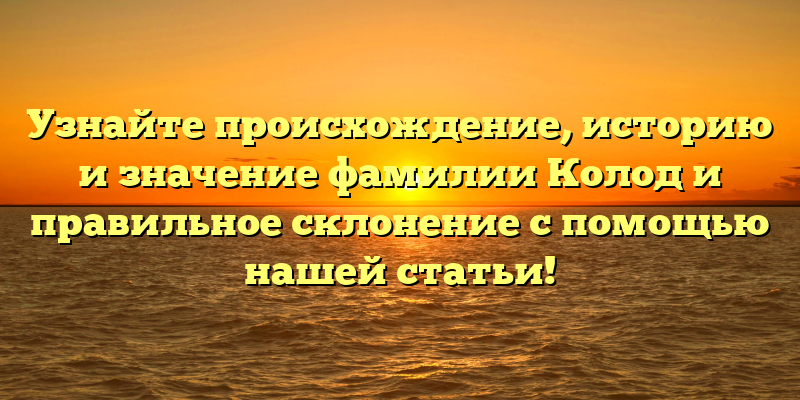 - Раскрываем тайны фамилии Колод: происхождение, история и правильное склонение — подробный гайд на нашем сайте.