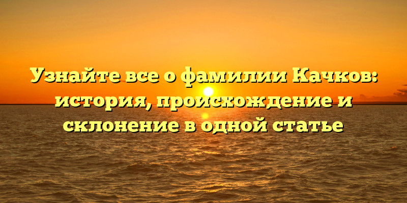 - Фамилия Качков: полный исторический обзор, происхождение и склонение в одной статье