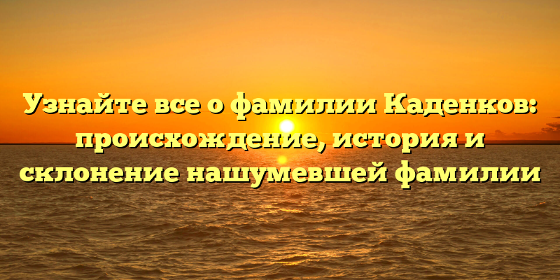 Для того, чтобы узнать все о фамилии Каденков – происхождение, историю и правильное склонение – читайте нашу статью до конца. У нас вы найдете все ответы на ваши вопросы!