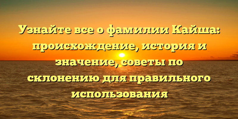 В этой статье мы рассмотрим историю и происхождение фамилии Кайша, а также дадим советы по ее правильному склонению.