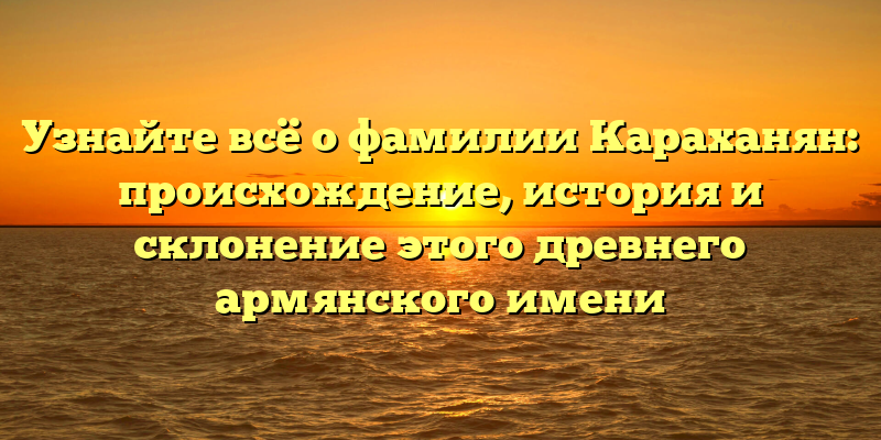 В этой статье мы расскажем вам о происхождении фамилии Караханян, о её истории и распространении, а также рассмотрим склонение этого древнего армянского имени.