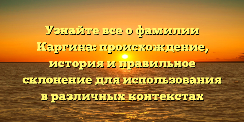 - Фамилия Каргина: происхождение, история и советы по правильному склонению в различных ситуациях