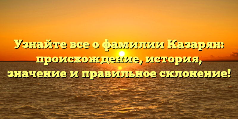 Если вы являетесь носителем фамилии Казарян или просто интересуетесь происхождением фамилий, то вам стоит узнать больше об этой увлекательной теме. Мы подготовили для вас полное руководство о фамилии Казарян: от истории и происхождения до правильного склонения в разных падежах. Не пропустите!