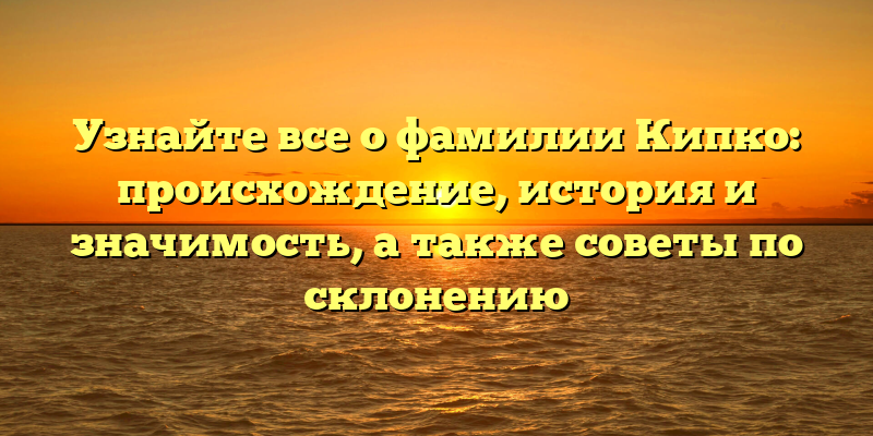 - Раскрываем все тайны фамилии Кипко: история, происхождение и правильное склонение