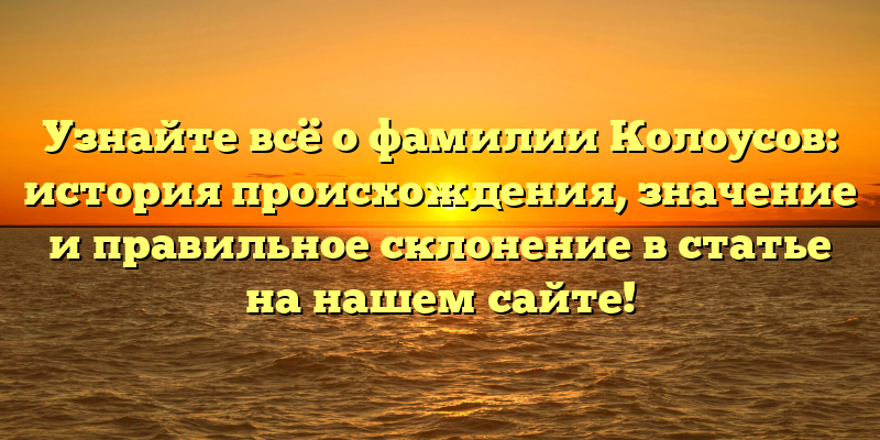- Фамилия Колоусов: происхождение, значение и правильное склонение — все, что вам нужно знать!