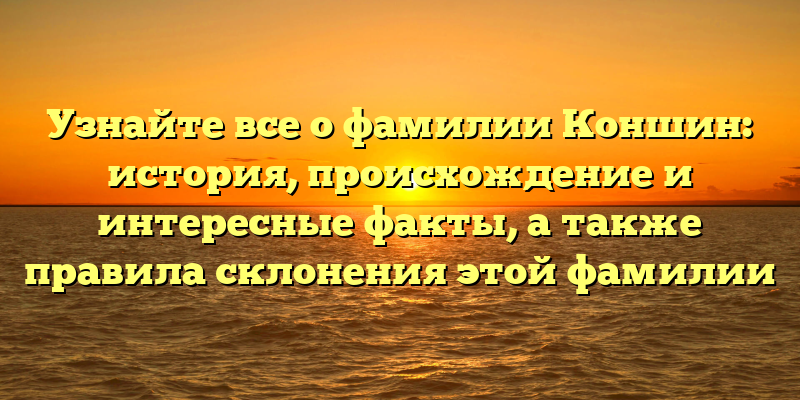 - Исследуйте историю и происхождение фамилии Коншин, узнайте интересные факты и правила склонения в нашей подробной статье