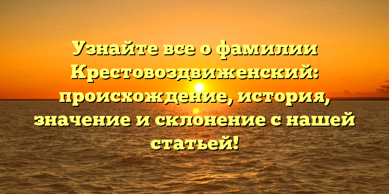 - Фамилия Крестовоздвиженский: происхождение, история, значение и склонение — полное руководство для исследования.