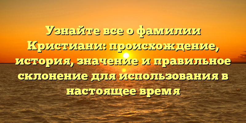 - Фамилия Кристиани: происхождение, история и правильное склонение для использования современных именительных падежей
