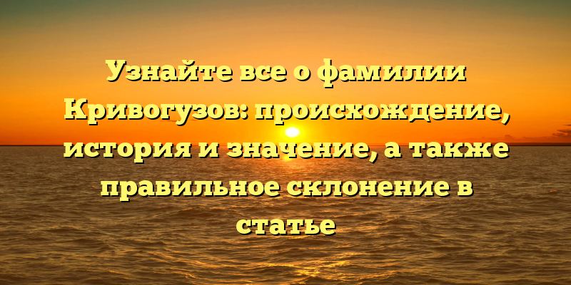 - Фамилия Кривогузов: происхождение, история, значение и правильное склонение – все о ней в одной статье