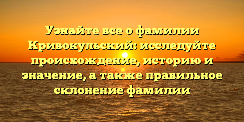 Фамилия Кривокульский: история происхождения, значение и правила склонения — полный гид для исследования!