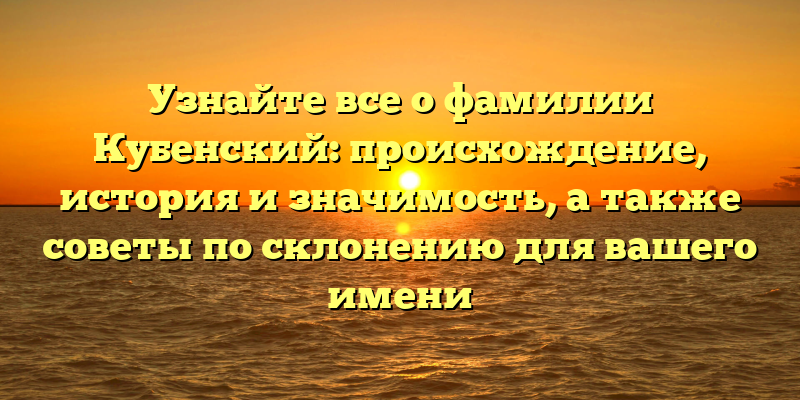 - Раскрываем тайны фамилии Кубенский: происхождение, история и правильное склонение для вашего имени