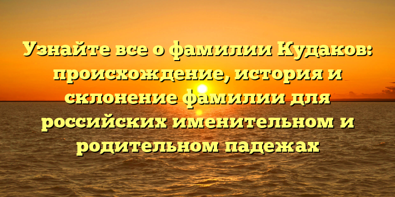 Фамилия Кудаков: происхождение, история и правильное склонение в именительном и родительном падежах — все, что вам нужно знать.