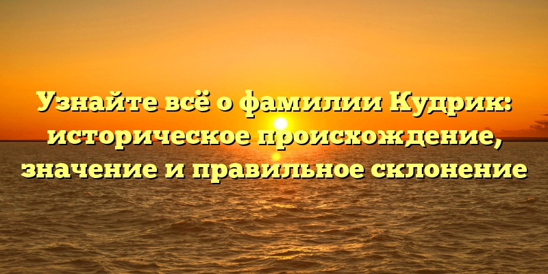- Раскрываем все тайны фамилии Кудрик: происхождение, значение и склонение через призму исторических фактов