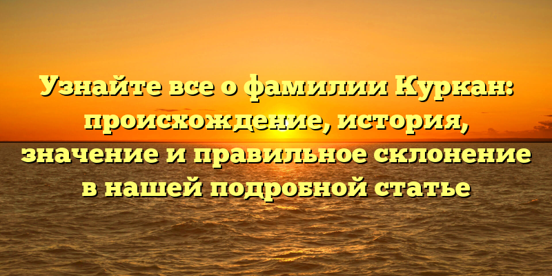 - Фамилия Куркан: происхождение, история, значение и правильное склонение — всё, что вы хотели знать, в нашей подробной статье.