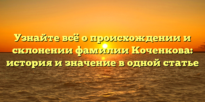 - Расскрываем тайны фамилии Коченкова: их происхождение и склонение в одной статье
