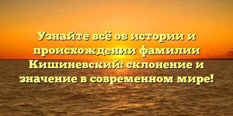 - История и значение фамилии Кишиневский: краткий обзор на сегодняшний день