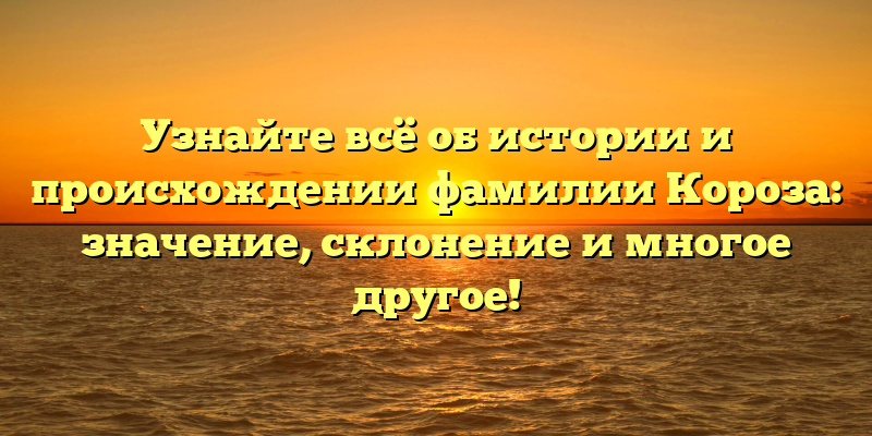- Изучаем историю и происхождение фамилии Короза: значение, происхождение и другие интересные факты для вас!