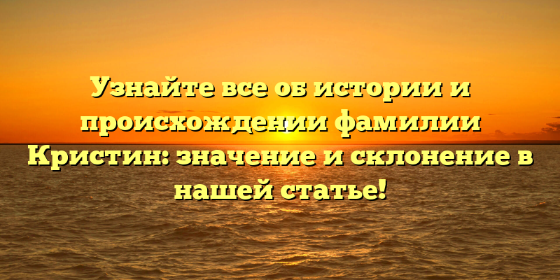 - Исследуйте историю и происхождение фамилии Кристин: значение и склонение в нашей увлекательной статье!