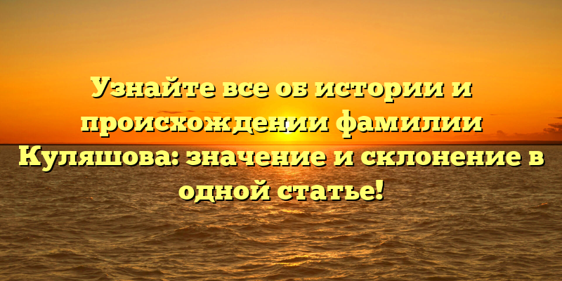 История фамилии Куляшова: значение, происхождение и склонение в одной статье!