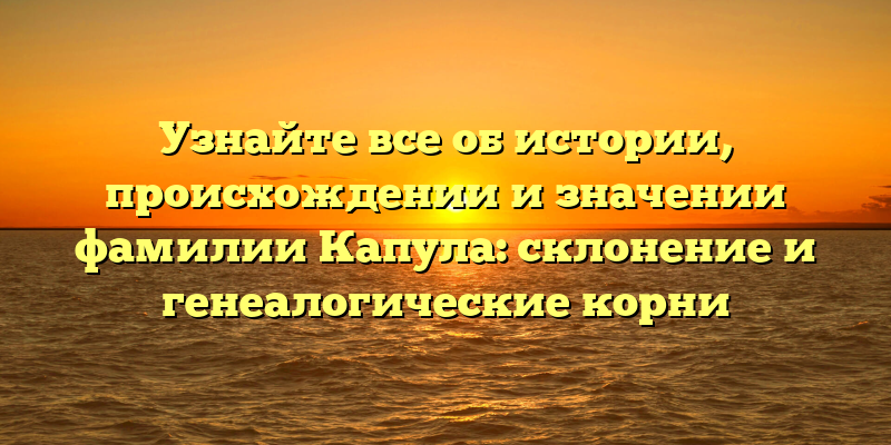 Раскрываем тайны фамилии Капула: история, происхождение и склонение фамилии, генеалогические корни.