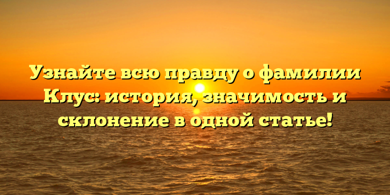 Если вы хотите узнать как можно больше информации о фамилии Клус, тогда вы попали по адресу. В этой статье мы расскажем вам происхождение фамилии, ее значимость в истории, а также дадим советы по склонению.