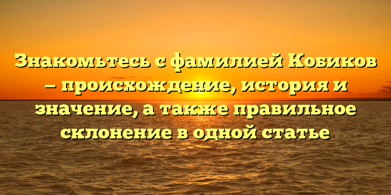 - «Кобиков: происхождение, история и значение фамилии, а также правильное склонение – полное руководство»
