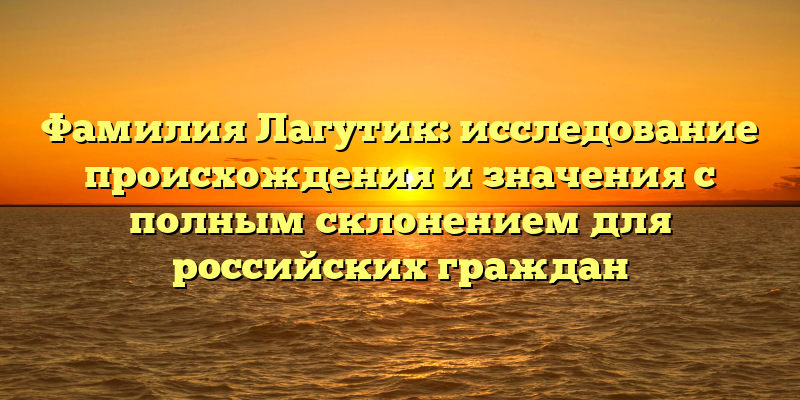 Фамилия Лагутик является не очень распространенной в России, и многие могут не знать ее происхождения и значения. В данной статье мы рассмотрим эту фамилию подробно, исследуем ее происхождение, значение и снабдим читателей полным склонением для российских граждан.