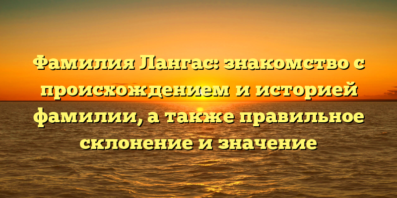 - Открываем тайны происхождения фамилии Лангас и узнаем правильное склонение и значение: история вашей семьи ждет вас!
