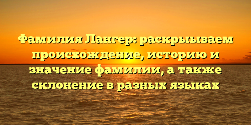 «Факты о фамилии Лангер: происхождение, история и значение, а также его склонение в различных языках»