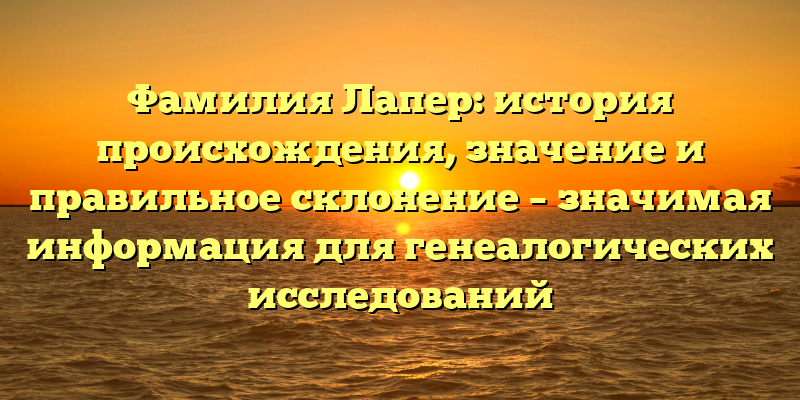 Раскрываем историю происхождения и значение фамилии Лапер, важную информацию для генеалогических исследований