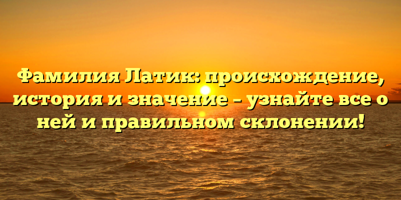 Родословная фамилии Латик: исследуем происхождение и значение, а также правильное склонение!