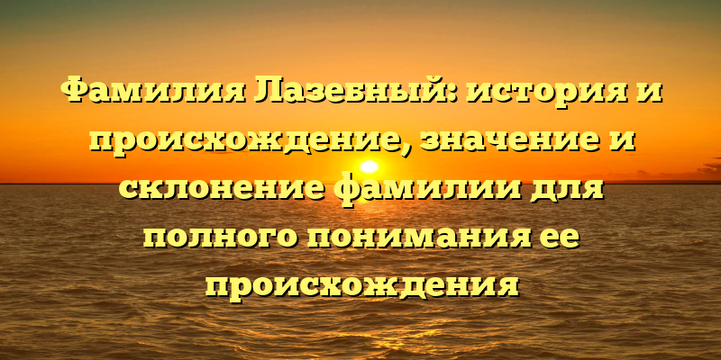 Откройте тайны происхождения фамилии Лазебный и узнайте все о ее истории, значении и склонении в нашей подробной статье.