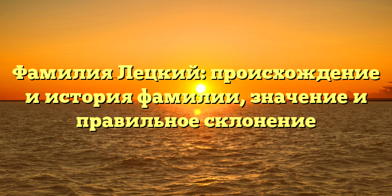 - Фамилия Лецкий: история, происхождение и правильное склонение. Все, что нужно знать!