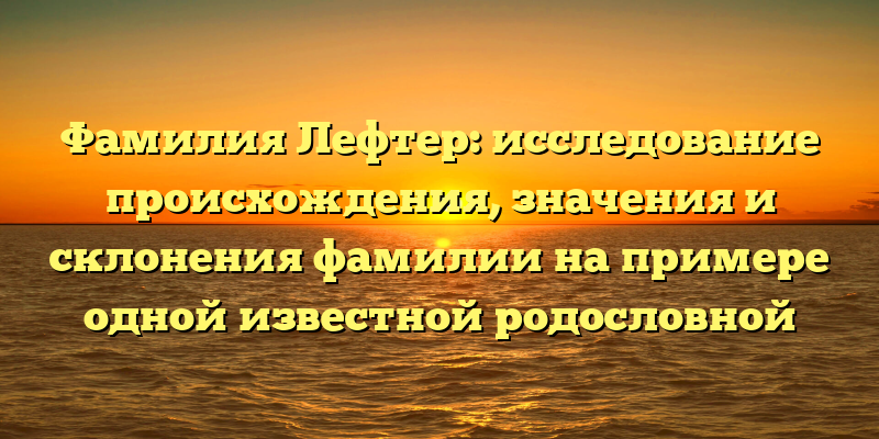 - Раскрытие тайн фамилии Лефтер: происхождение, значение и склонение семейного имени в исследовании известной родословной