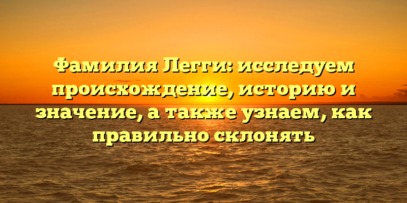 От истории к правильному склонению: исследуем происхождение и значение фамилии Легги