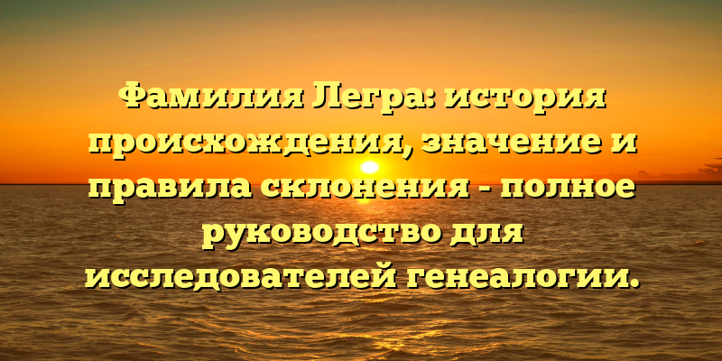 Изучаем происхождение и значение фамилии Легра: правила склонения и полное руководство для генеалогических исследований.