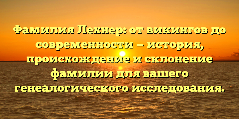 История и происхождение фамилии Лехнер: от викингов до современности. Узнайте все об этом важном имени для вашего генеалогического исследования.