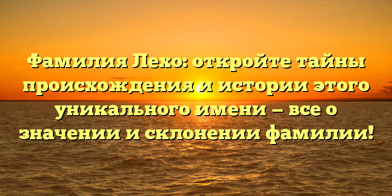 Раскройте тайны происхождения фамилии Лехо и узнайте все о ее значении и склонении: история уникального имени