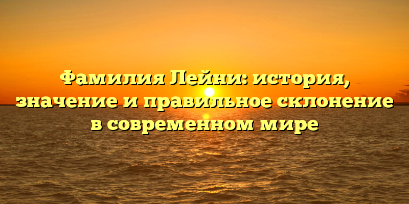 - Фамилия Лейни: происхождение, значения и правила склонения в современном обществе