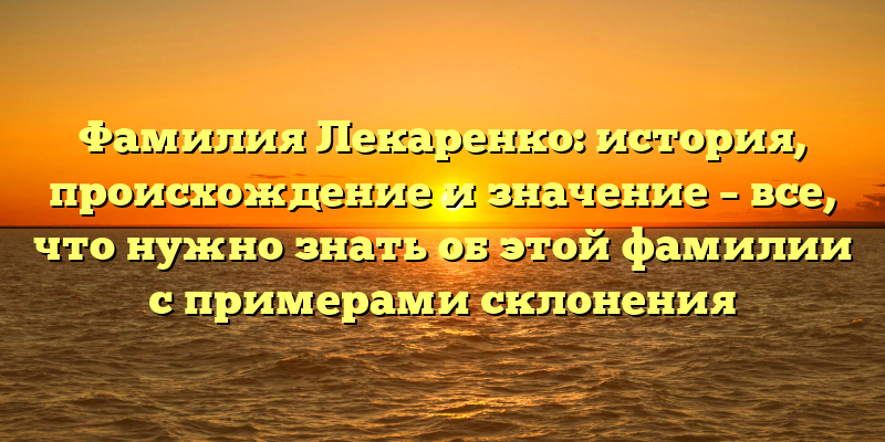- Фамилия Лекаренко: происхождение, история и значение, а также правила склонения — полное руководство