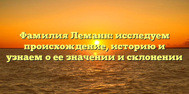 - Раскрываем тайны фамилии Леманн: исследуем происхождение, историю и правила склонения