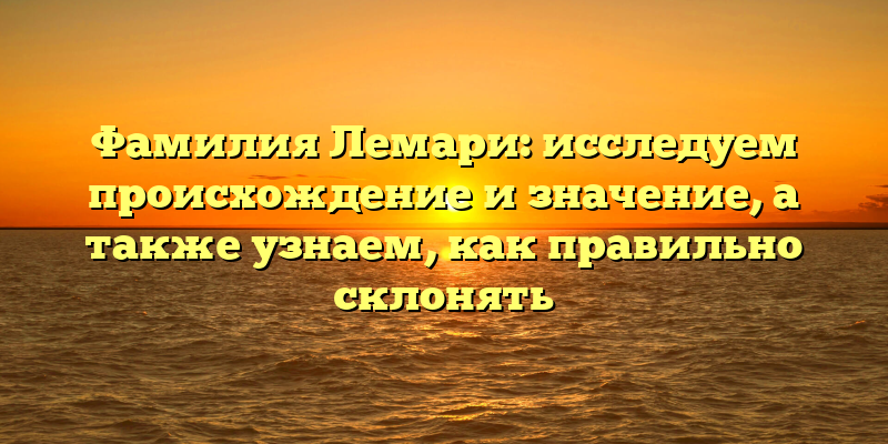 История и значения фамилии Лемари: правильное склонение исследуем в нашей статье.