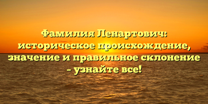 - Фамилия Ленартович: исследуем историю, значения и правильное склонение этого уникального имени!