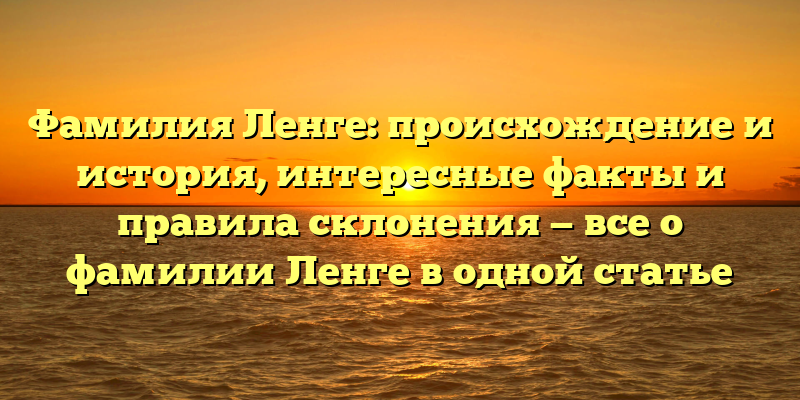 - Фамилия Ленге: происхождение, история и интересные факты – полное руководство и правила склонения в одной статье