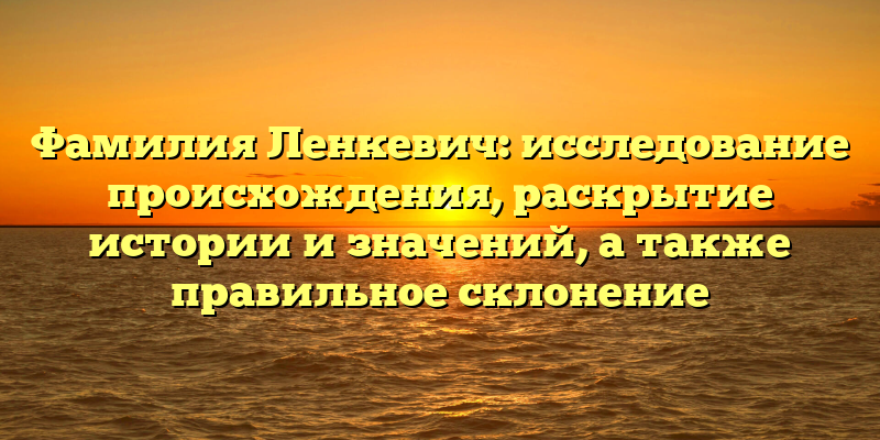 - Фамилия Ленкевич: происхождение, история, значения и правильное склонение — все, что нужно знать