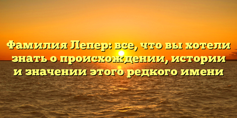 Читайте нашу статью и погрузитесь в мир загадочной и удивительной фамилии Лепер.