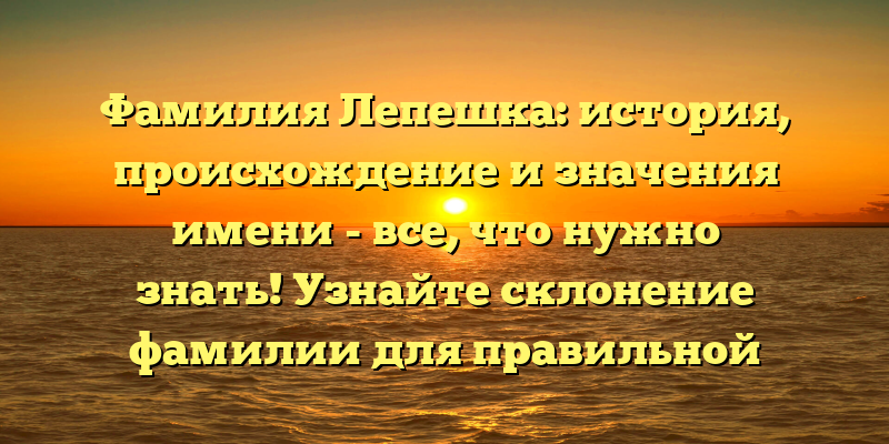 Фамилия Лепешка: происхождение, история и значения имени в одной статье. Узнайте правильное склонение для записи!
