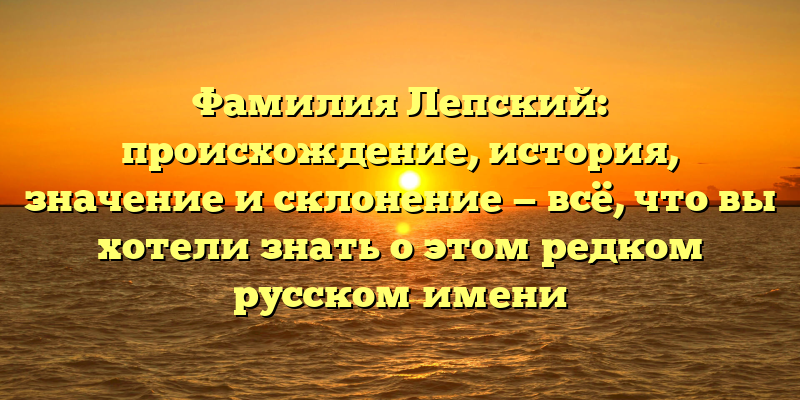 Фамилия Лепский: узнайте происхождение и историю этого редкого русского имени и правильное склонение.