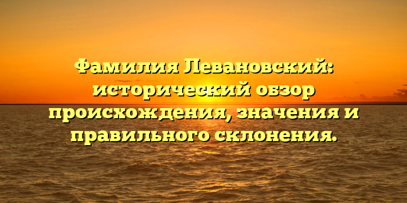 В этой статье мы рассмотрим подробный исторический обзор происхождения фамилии Левановский, ее значения и правильного склонения в различных контекстах.